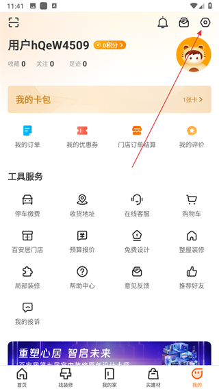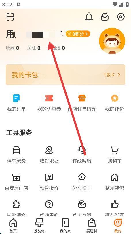 1、打开百安居APP,点击我的选项,进入个人页面。