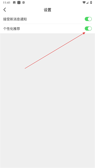 4、找到个性化推荐选项,点击其右侧的开关按钮。