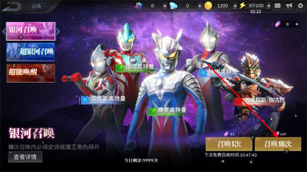 2、进入召唤英雄界面,点击召唤十次,即可获得碎片。