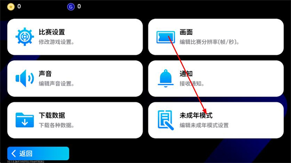 3、在游戏设置界面点击未成年人模式选项,进入未成年人模式设置页面。