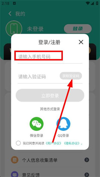3、在登录/注册弹窗中,填写手机号并获取验证码。