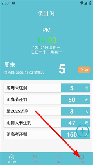 1、打开倒计时助手App,点击页面底部的设置选项。