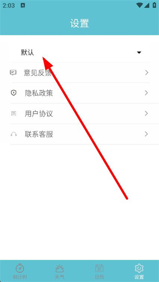 2、进入设置页面后,点击默认选项展开下拉菜单。