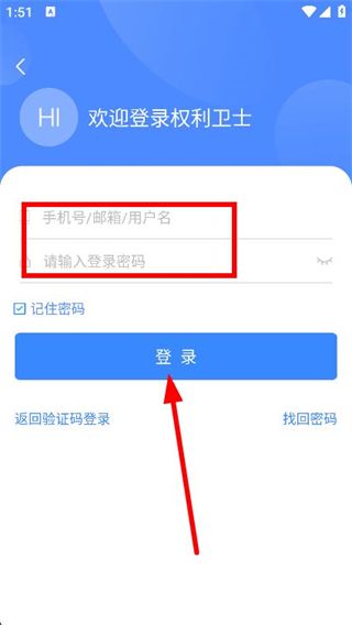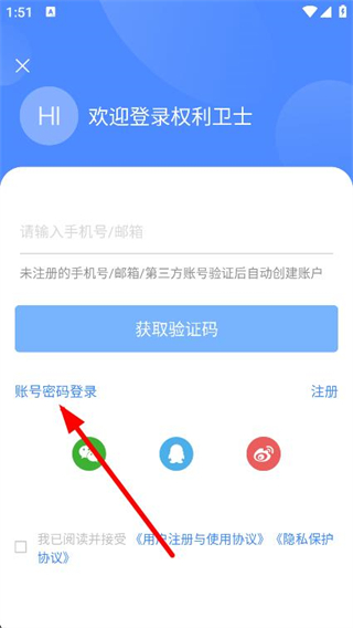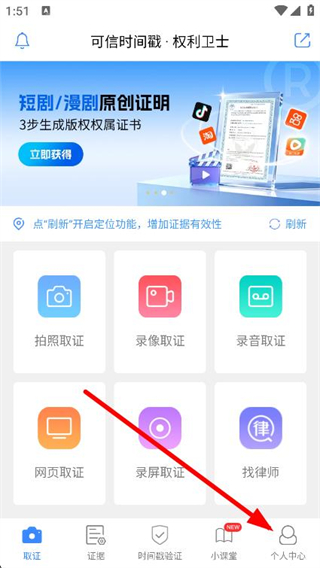 1、打开权利卫士,点击页面底部的个人中心选项。