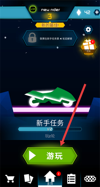 1、在新手任务界面,点击游玩按钮,开启新手任务的第1轮挑战,进入摩托竞速关卡。