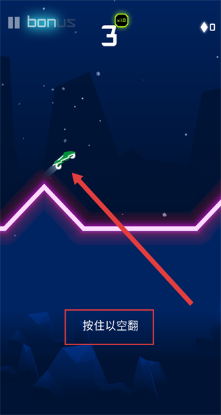 核心操作仅需按住屏幕,在游玩中无需复杂按键组合,空中自动逆时针翻转,新手快速掌握,专注速度与节奏把控,碎片化时间即可开启游戏。