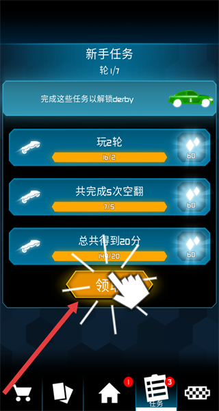 3、完成一轮挑战后,点击底部任务按钮,查看新手任务的进度,进行领取奖励。