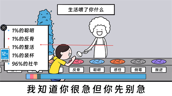 1、趣味与实用兼具,既通过恶搞搞笑的解题过程带来休闲乐趣,又借助现实场景与评测体系,为玩家提供真实的情商提升参考,做到“娱乐+成长”双收获。