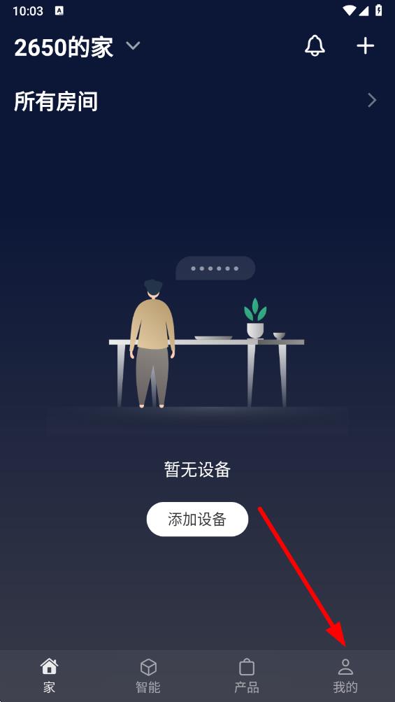 1、打开智家365app,点击底部导航栏最右侧的我的选项,进入个人相关界面。