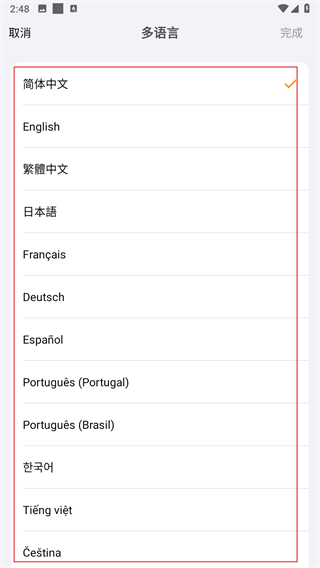 4、选择需要的语言,选择完成后点击完成。