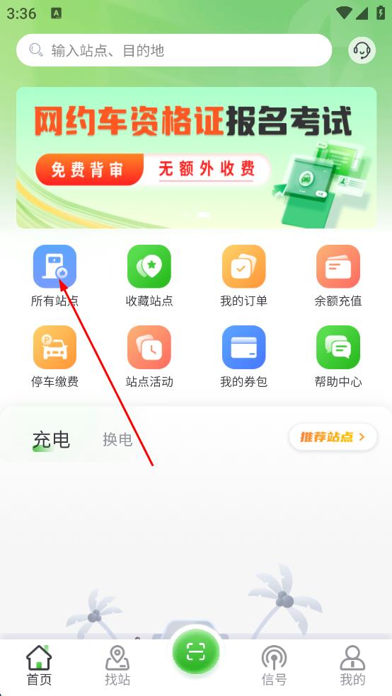 1、打开出行软件首页,点击所有站点图标,进入站点相关页面,可查看各类站点服务及功能入口。