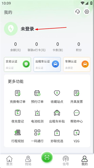2、切换到我的页面,点击未登录区域,按提示完成登录操作,以便使用更多个性化站点服务。
