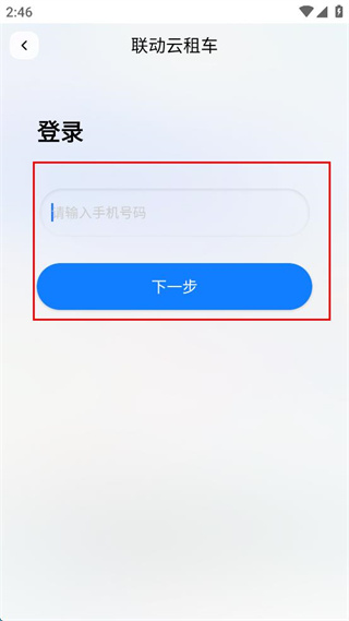 2、在登录页面输入手机号码,点击下一步,完成登录操作。