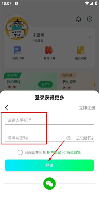3、在登录窗口填写手机号和密码,勾选协议后,点击登录完成账号登录操作。