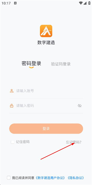 1、在数字建造登录页面点击忘记密码选项,进入重置密码页面。