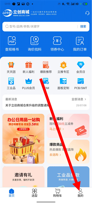 1、在立创商城首页,点击底部我的按钮,进入个人页面。