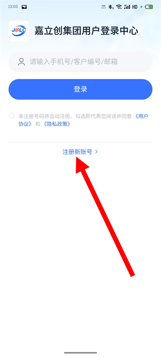 3、在登录中心页面,点击注册新账号,进入注册新账号页面。