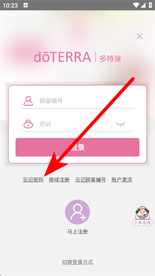 2、在登录页面,点击忘记密码,进入优惠顾客找回密码页面。