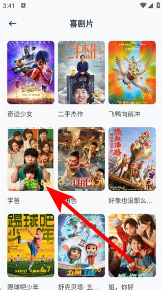 3、在喜剧片列表中,点击选择目标影视作品,进入详情页面。