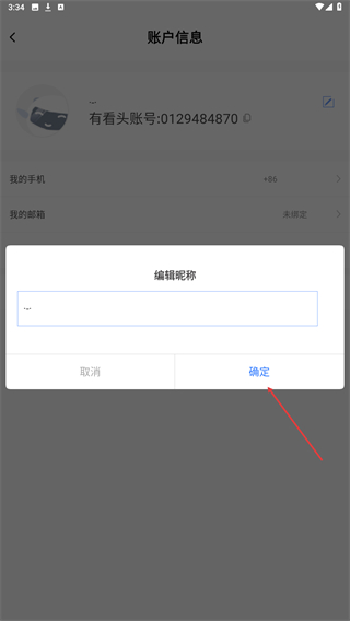 4、在辑昵称弹窗中输入新的昵称内容,点击确定按钮即可。