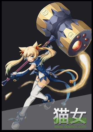 角色背景:猫女,轻而易举便将诺亚圣锤举起的猫族圣女,与居住在附近、世代交善的狼人最为亲密.平时她贪玩又粘人,偶尔也会撒娇闹别扭.当魔物入侵猫族时,举起圣锤的猫女所向披靡,一个个魔物接连被她轰上天去.在解决猫族的威胁后,她去找狼人,这时狼人正前往猎人组织的路上,猫女一路偷偷尾随,最后他俩一起加入了猎人组织.