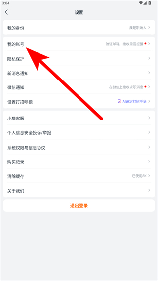 3、在设置界面中,点击我的账号选项,进入账号管理页面。