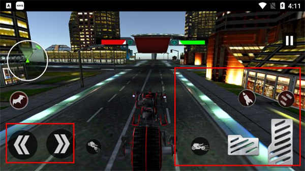 3、进入载具驾驶场景后,通过左侧方向按钮控制载具的移动方向,配合右侧功能按钮使用对应的技能。