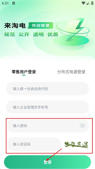 4、在账号密码登录界面,填写密码和验证码后,点击登录按钮完成登录。