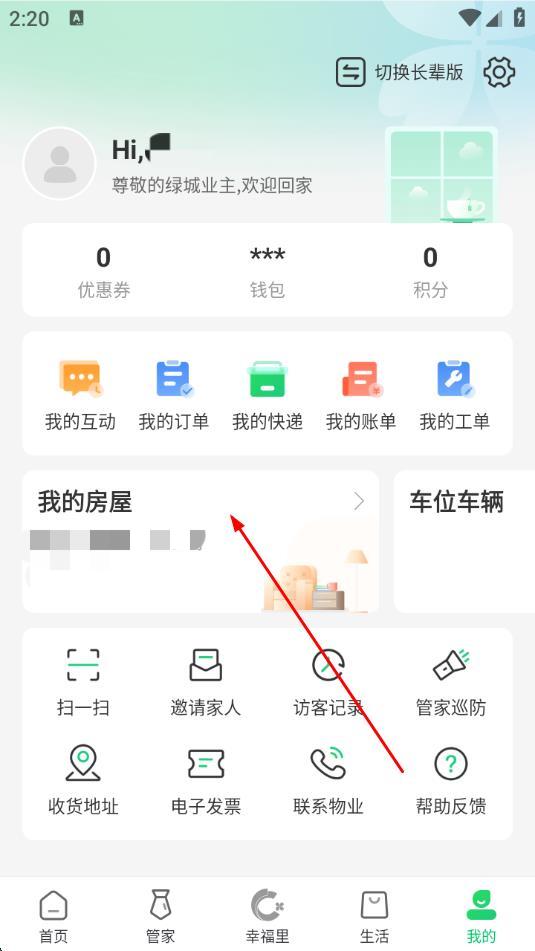 2、在“我的”页面,找到我的房屋板块并点击进入。