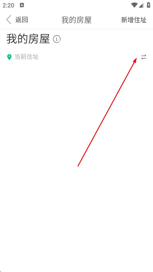 3、进入我的房屋页面后,点击当前住址右侧的箭头图标。