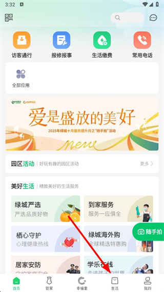 1、在绿城生活app首页点击生活选项,进入生活页面。