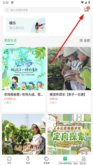 2、在生活页面点击右上角购物车图标,进入购物车页面。