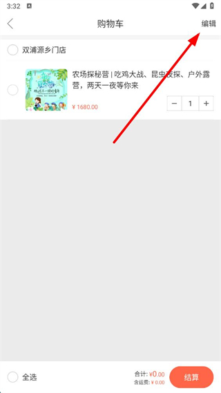 3、在购物车页面点击编辑选项,进入编辑模式。