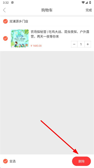 4、在编辑模式下选择要删除的商品,点击删除按钮,即可完成购物车商品删除操作。