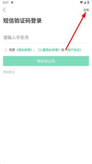 2、进入登录页面后,点击右上角的注册选项。