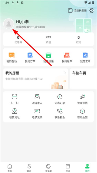1、在绿城生活app,点击底部我的按钮,进入我的页面。