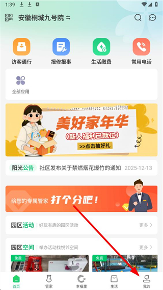 1、打开绿城生活APP,点击底部导航栏中我的选项。