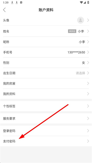 3、在账户资料页面,找到支付密码选项并点击,进入支付密码相关操作界面。