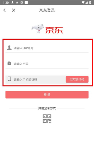 2、在京东登录页面,依次填写ERP账号、对应的密码,获取验证码输入。