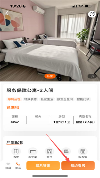 3、在房型详情页面,点击预约看房按钮,可进入预约看房页面。