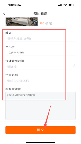 4、在预约页面,填写信息后,点击提交按钮即可完成看房预约。