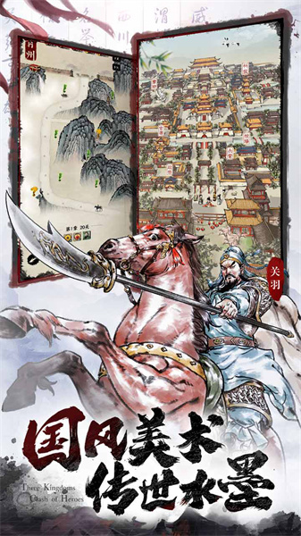 1、全新的美术画面,独特的国风水墨风格,塑造出一个个鲜活的三国人物。