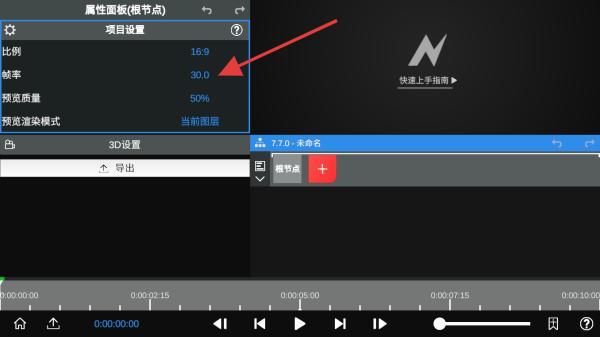 2、在左侧属性面板的项目设置中,找到帧率选项。