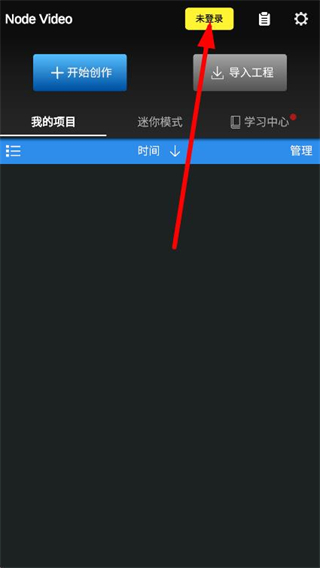 1、打开NodeVideo,点击页面右上角的未登录选项。