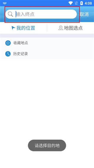 4、在弹出的输入框中填写终点内容,后续可结合需求选择对应的目的地完成操作。