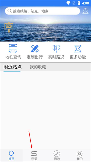 2、进入软件首页,找到页面底部的导乘选项,点击该选项进入导乘界面。