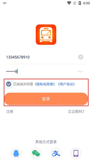 3、进入登录界面后,在对应输入框依次填写手机号和符合要求的密码。