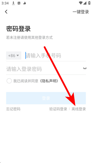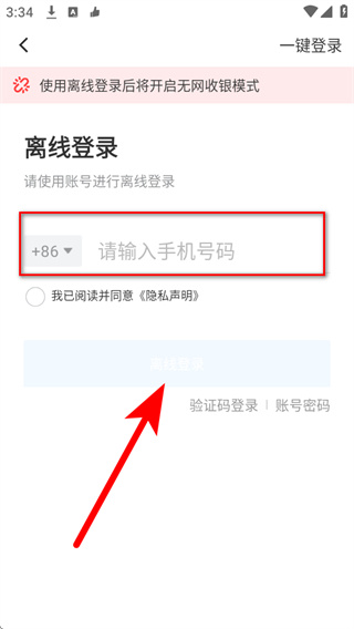 4、在离线登录页面填写手机号码,勾选相关协议后,点击登录完成离线登录。