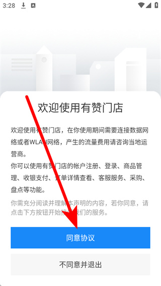 1、打开有赞零售,在的协议弹窗中点击同意协议,进入主界面。