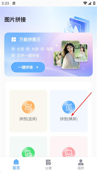 1、在图片拼接首页,点击横屏选项,进入横屏拼图页面。